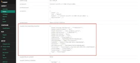 - Click on the new node to view its Facts. Notice that Cloud Assembly properties of the VM are passed to Puppet as Facts.