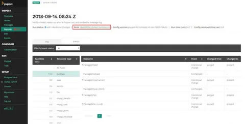 - Select the Reports tab to see what Puppet has done to bring the VM in the desired state. For example, install packages.