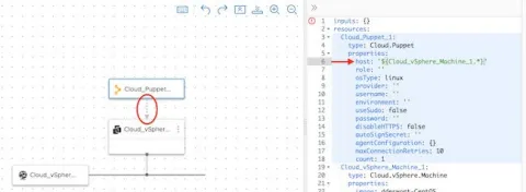 ${Cloud_vSphere_Machine_1.*}as value for the host property. A dependency (arrow) will automatically be drawn to the vSphere machine in the canvas.