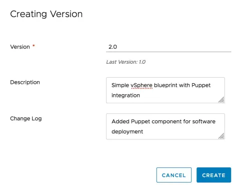 - Enter the Version number and optionally a Description and Change Log. Click Create.