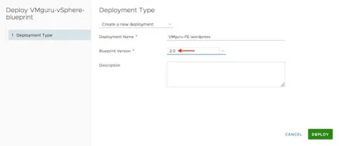 - Select Create a new deployment and enter a Deployment name. Select the Blueprint version you just created and click Deploy.